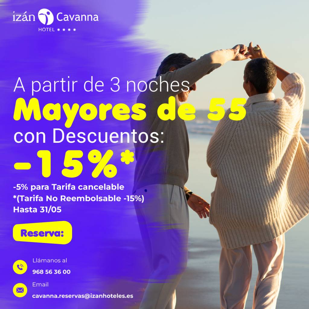 Félicitations ! Si vous avez 55 ans, il est temps de profiter pleinement de la vie. Célébrez cet événement avec cette OFFRE SPÉCIALE à partir de 3 nuits en pension complète et appréciez le calme de la Mar Menor ainsi que nos animations.